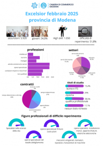 Nel mese di febbraio 2025 si contraggono le previsioni di assunzione delle imprese in provincia di Modena, come evidenziano i dati dell’indagine Excelsior, curata da Unioncamere in collaborazione con l’Agenzia Nazionale per le Politiche Attive del Lavoro e le Camere di Commercio italiane.