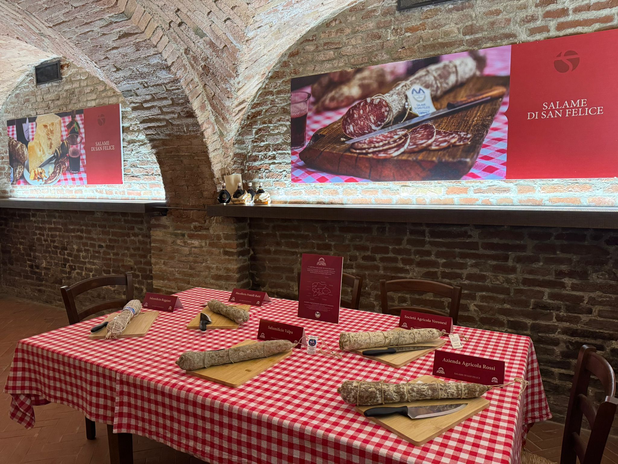 “Un luogo destinato alle attività di marketing e comunicazione del Salame di San Felice, eccellenza che racchiude la memoria, la storia, le tradizioni della Bassa, il nostro territorio.” Parole, quelle pronunciate da Federico Mazzoli, responsabile commerciale di SANFELICE 1893 Banca Popolare, che ben descrivono gli spazi – recuperati e ristrutturati nei sotterranei dell’istituto bancario – in