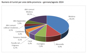 La nuova elaborazione, inserendo anche i mesi di luglio ed agosto, mostra una minore crescita nei comuni della pianura, mentre si riducono le perdite di turisti nella zona montana. Così gli arrivi nel comune capoluogo salgono del 3,5%, tuttavia gli incrementi maggiori si registrano a Mirandola (+17,1%), a Maranello (+14,2%) e Sassuolo (+4,9%).